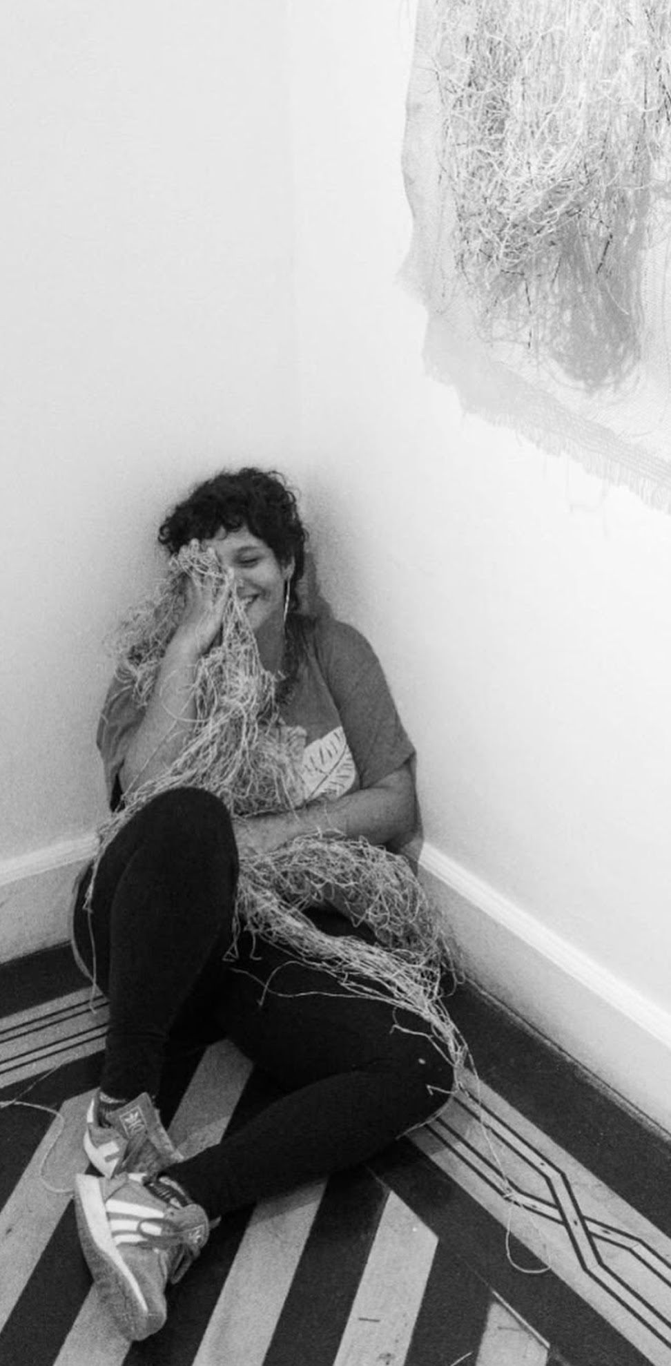 I am Emanuela Boccia (Salvador, BA, 1993), a visual artist and researcher based in Portugal. My work investigates the expressive potential of materiality and textile gesture. Throughout my trajectory, I have explored organic and recyclable materials through practices such as tapestry, embroidery, and textile installations. In my work, the manual gesture and the time required for production stand as a form of political resistance to the fast-paced, productivity-driven rhythm that defines contemporary life.